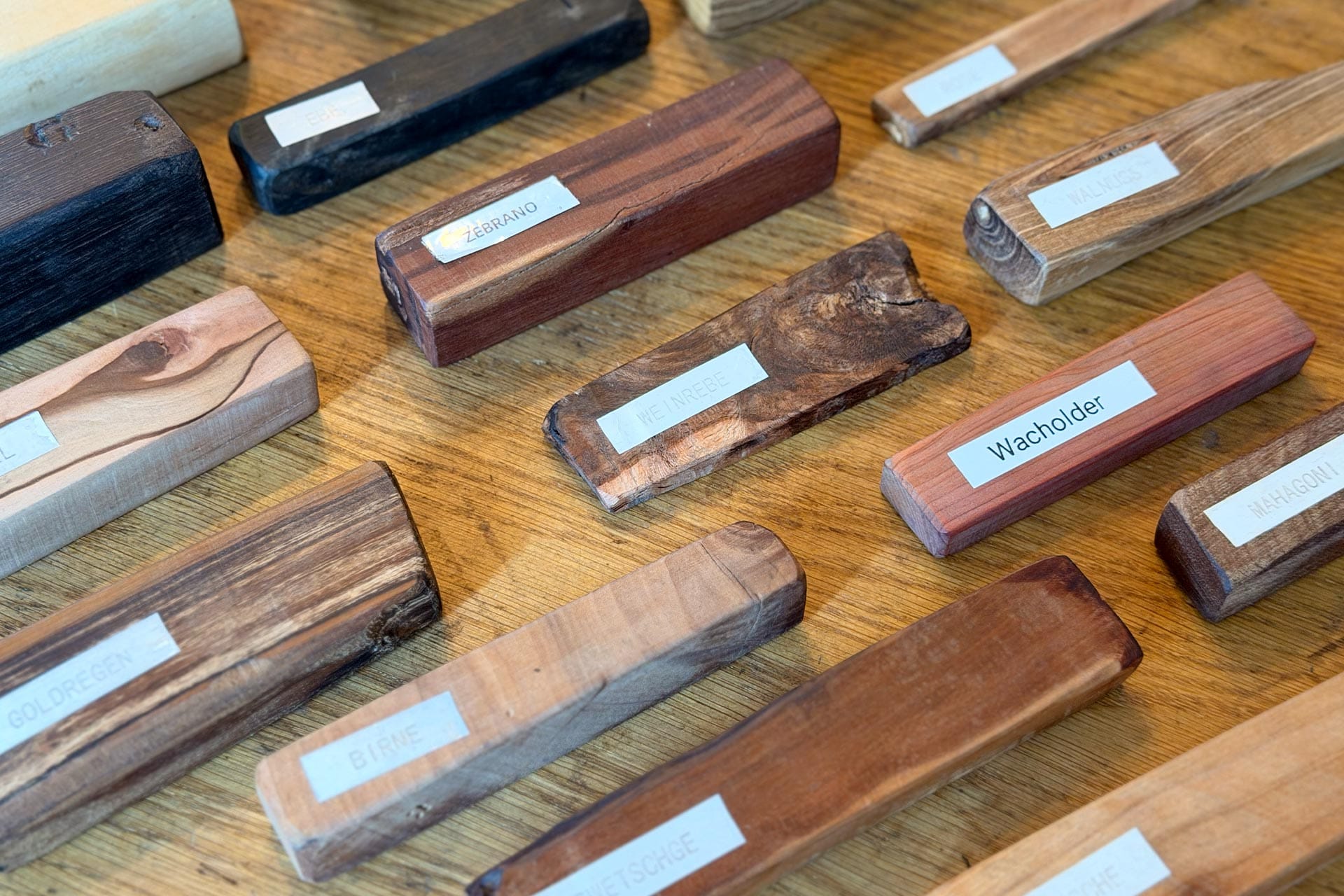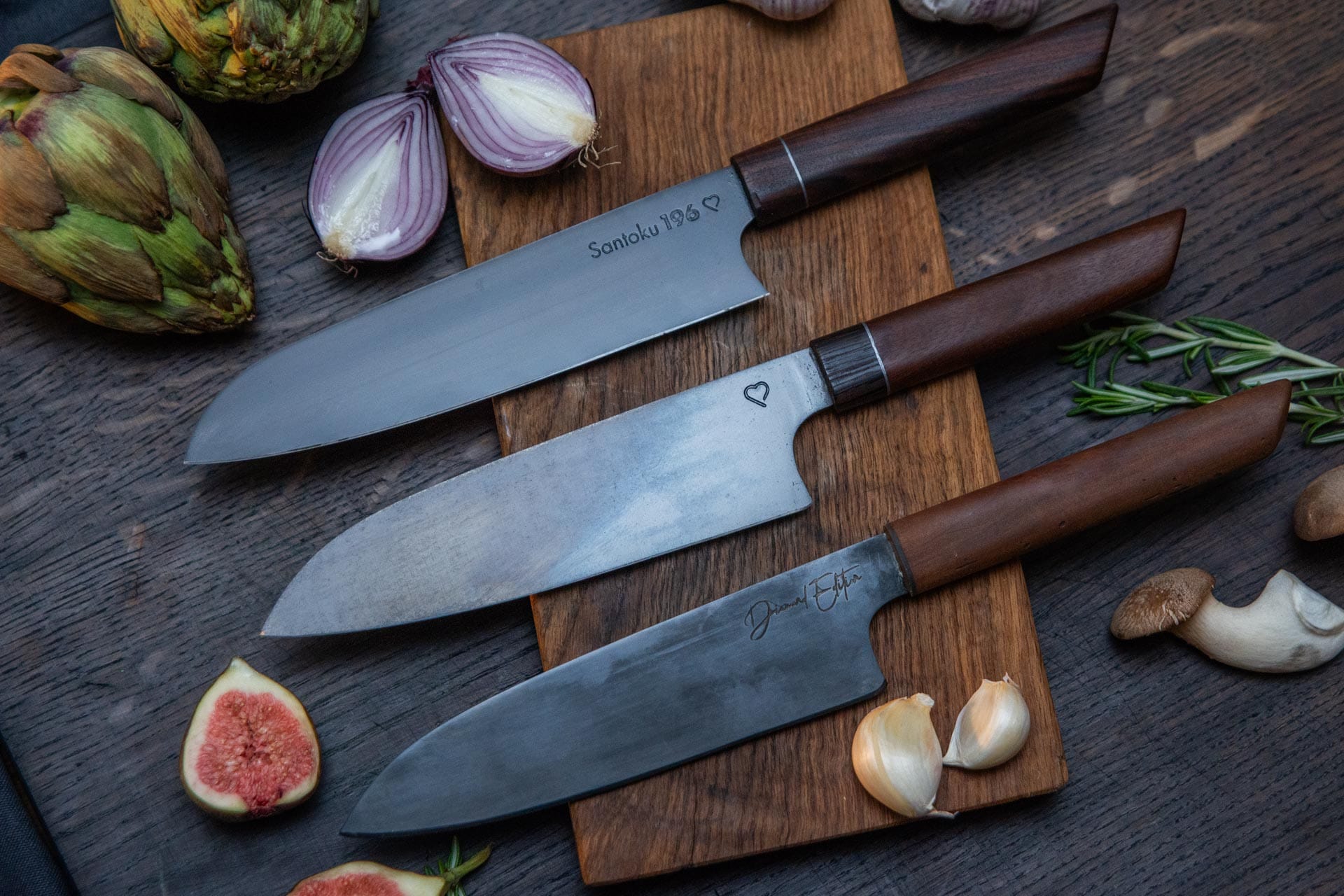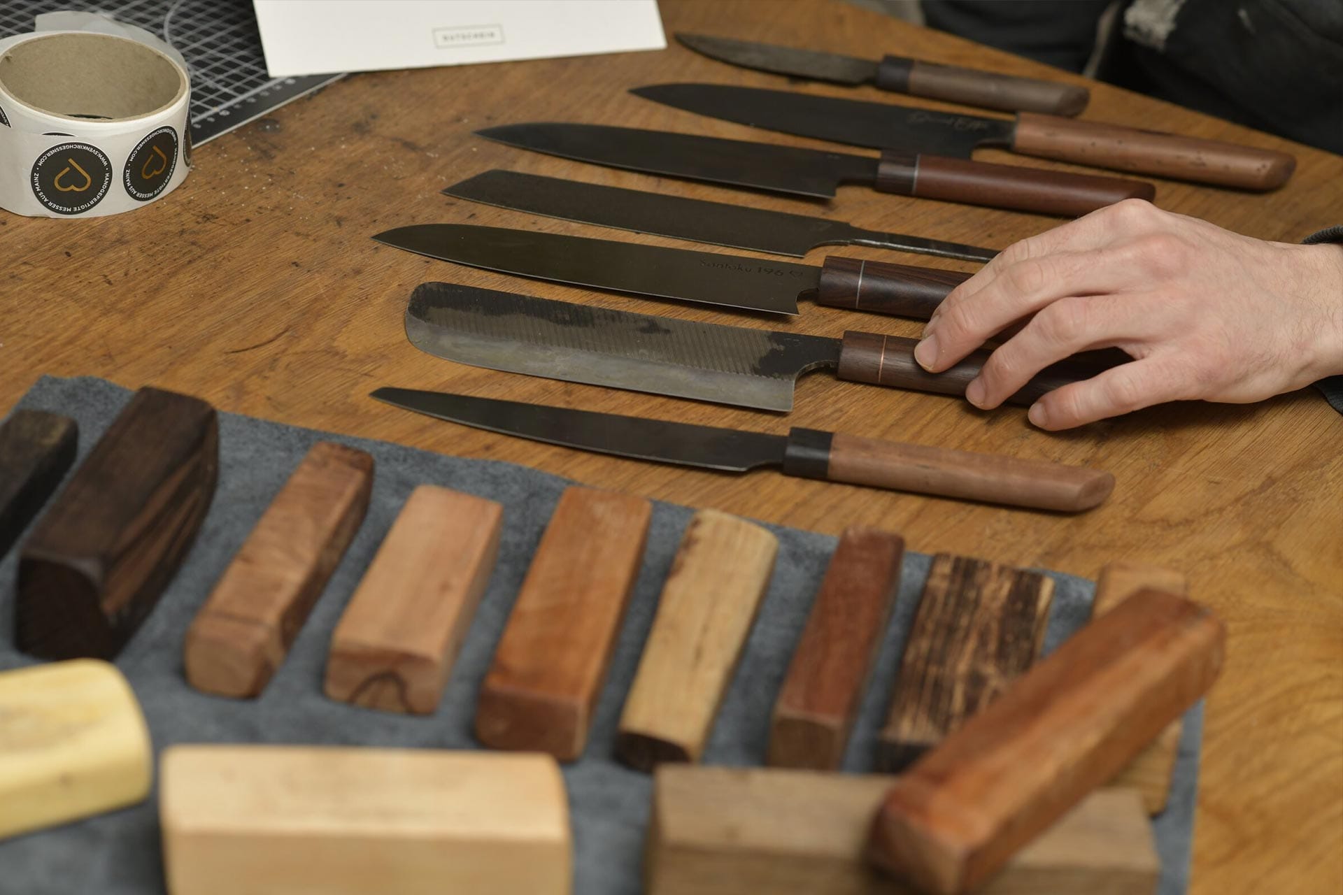 Die Qualität eines Messers beginnt bei der Wahl der Komponenten. Ich kombiniere hochwertigen, leistungsstarken Kohlenstoffsthal mit handverlesenen Hölzern, um die optimale Balance zwischen Schnitthaltigkeit und Ästhetik zu finden. Während die Editionen klare Vorgaben bei Material und Geometrie haben, bleibt jedes Holz in seiner Maserung einzigartig. Wer über diese Auswahl hinaus volle Gestaltungsfreiheit wünscht, kann sich im Bereich der Individualanfertigung sein ganz persönliches Einzelstück erschaffen lassen.