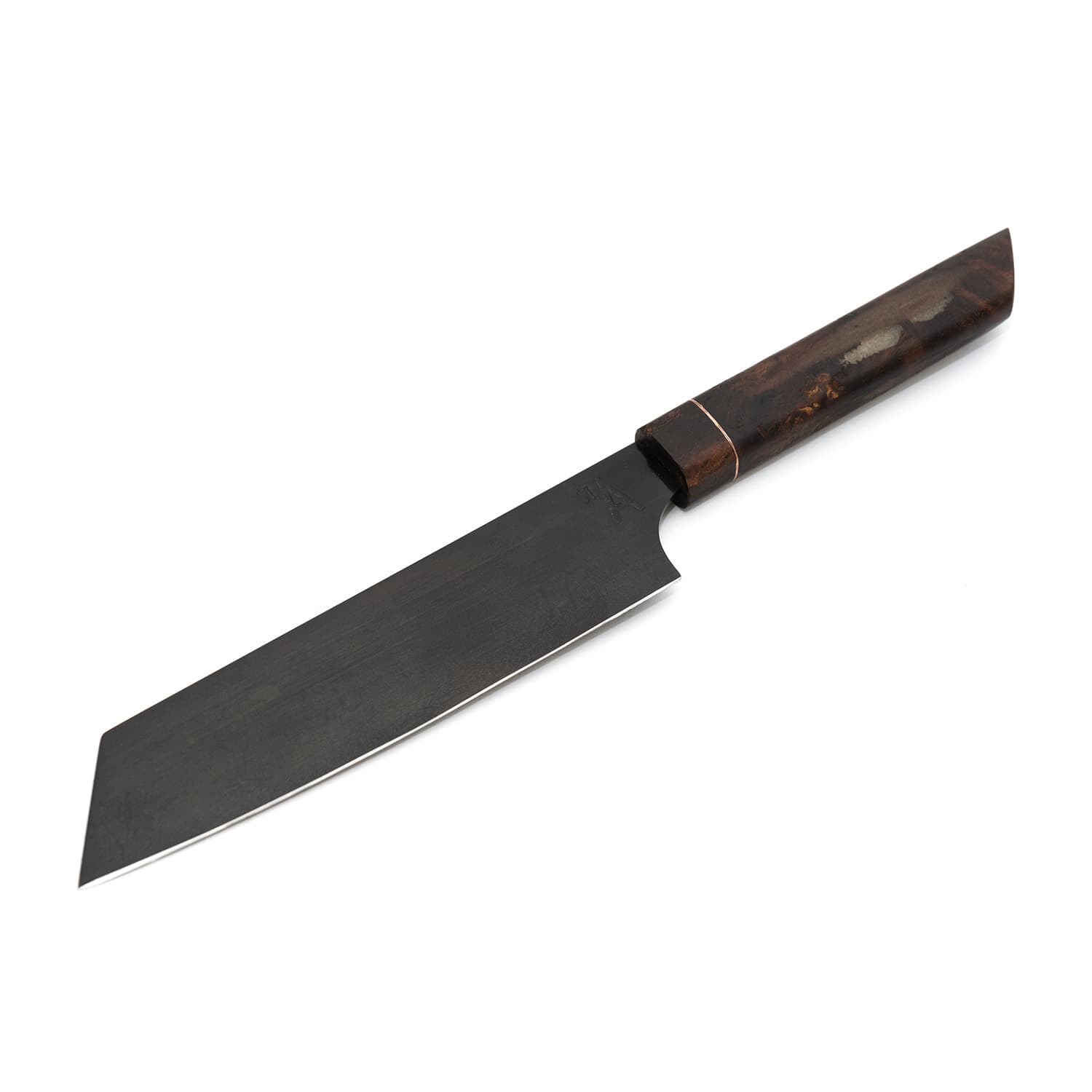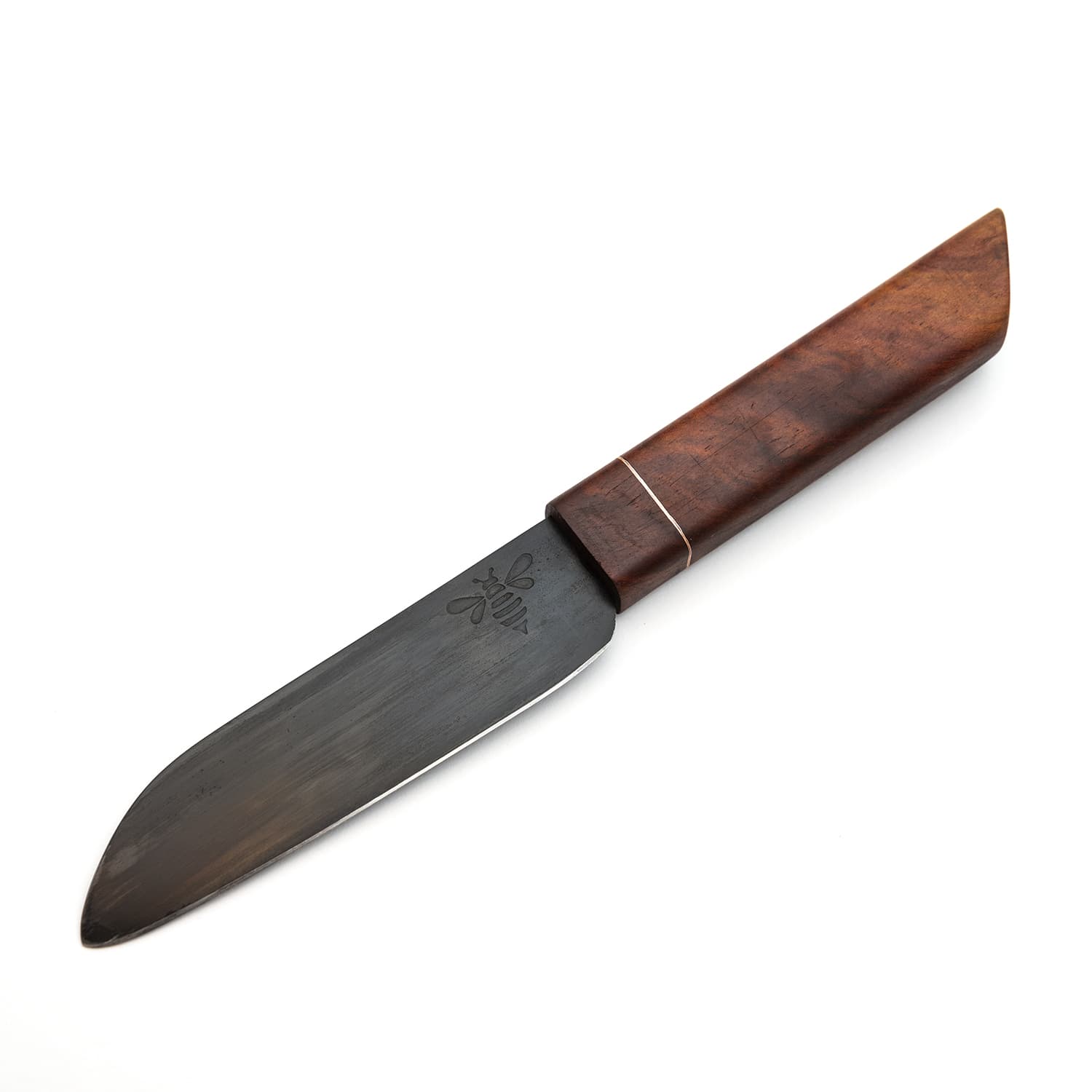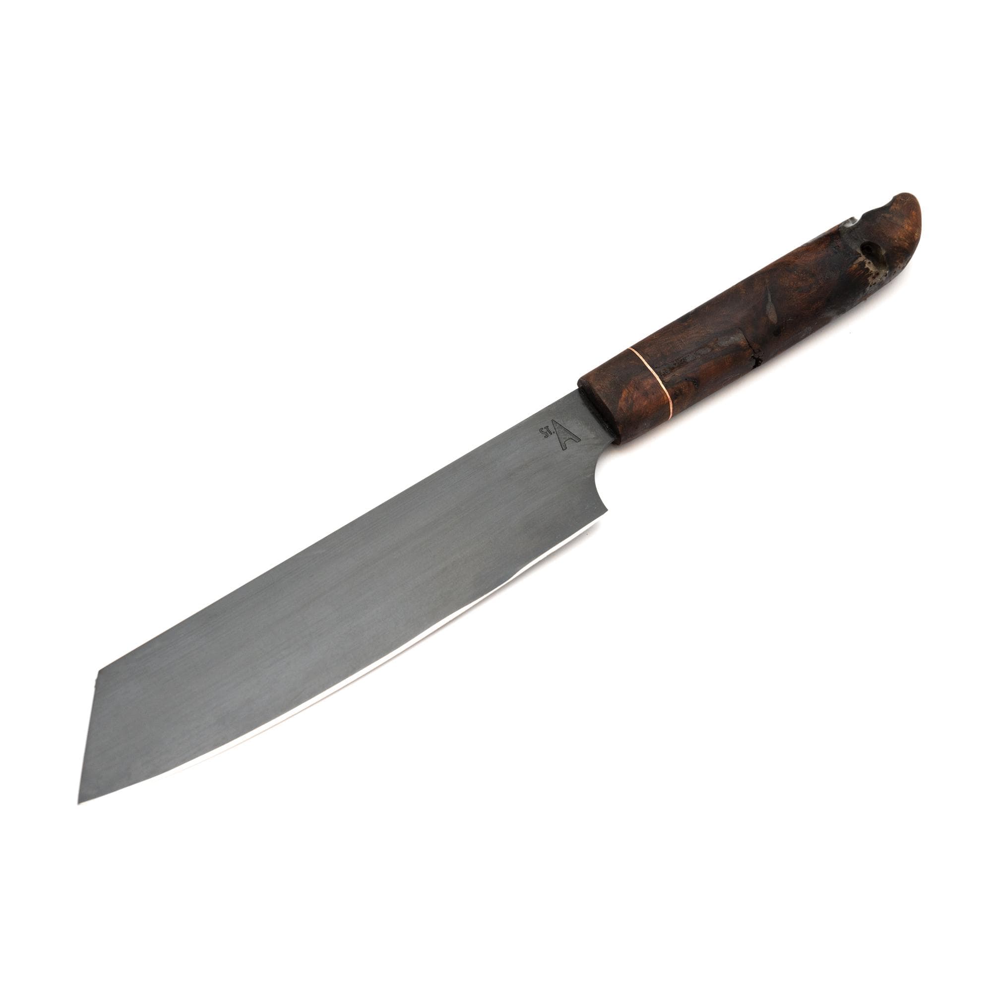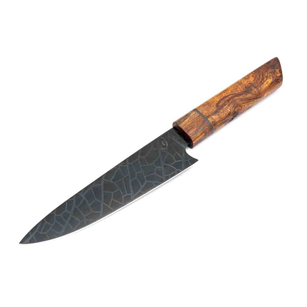 Klingenfinish, Oberflächenbehandlung und optionale Ätzungen verleihen dem Messer seinen eigenen Charakter. Auch die Wahl des Griffs ist Teil dieses Prozesses: ausgewählte Hölzer und Materialien, sorgfältig verarbeitet und präzise angepasst, bestimmen Haptik, Balance und Erscheinungsbild. Form, Gewicht und Ergonomie werden so aufeinander abgestimmt, dass ein Messer entsteht, das sich selbstverständlich anfühlt.