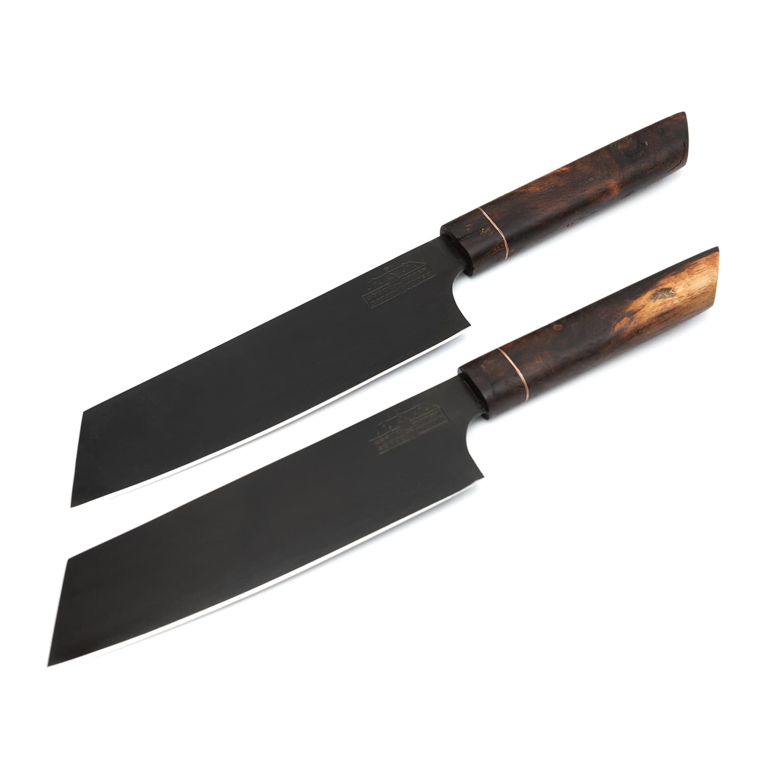 Die Form bestimmt Einsatz, Führung und Charakter des Messers. Ob Koch-, Küchen- oder Steakmesser, ob feine Spitze, klassisches Profil oder ausgeprägter Bauch – die Auswahl richtet sich nach deinem Einsatzbereich und deinen Vorlieben. Auch Details wie Griffform, Angelkonstruktion oder Backenform fließen in die Gestaltung ein.