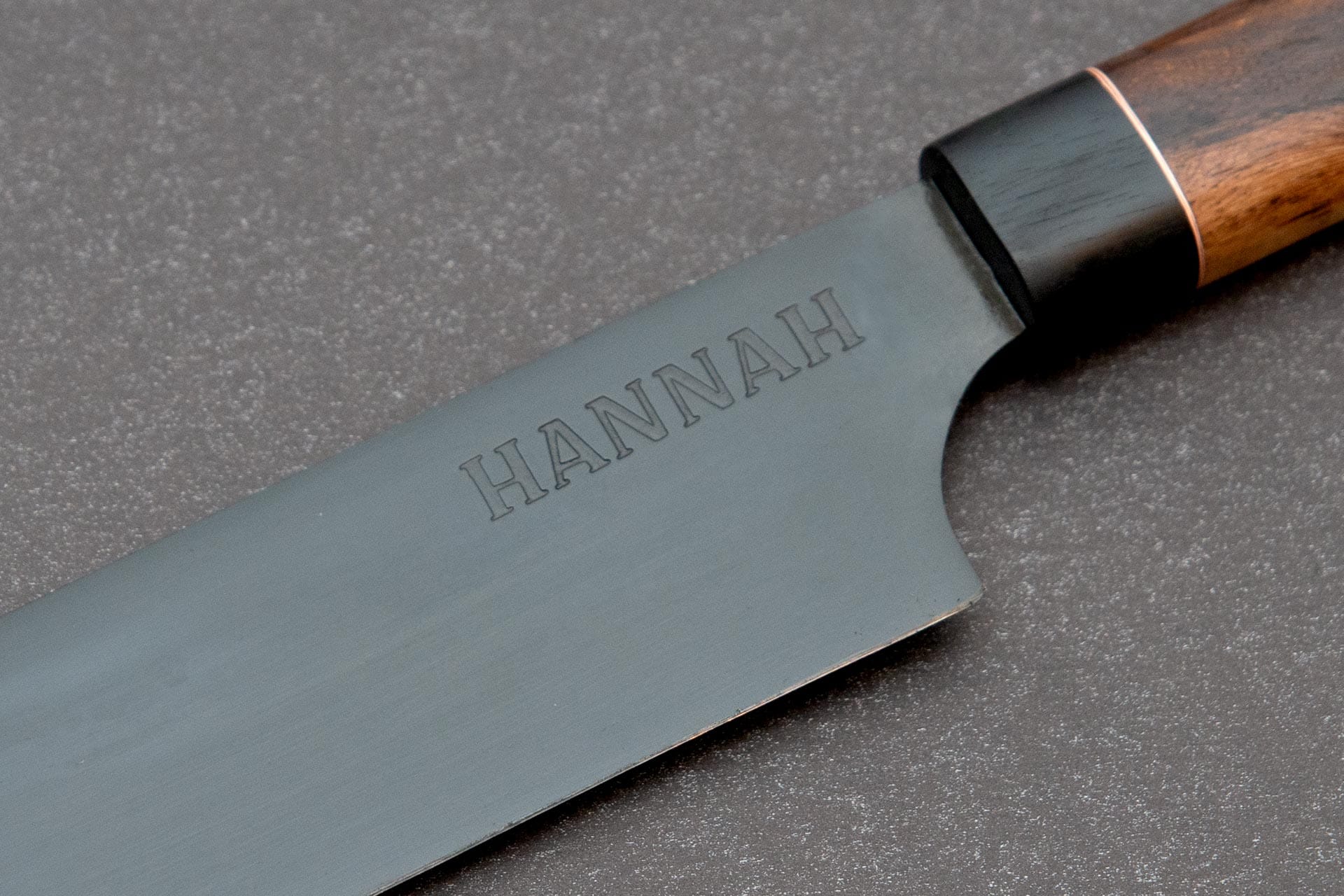 Die Klinge bietet Raum für Persönlichkeit. Ob Initialen, ein Logo oder eine persönliche Signatur – die Ätzung bestimmst du selbst. Dezent integriert oder bewusst sichtbar, immer passend zur Form und zum Charakter des Messers.
