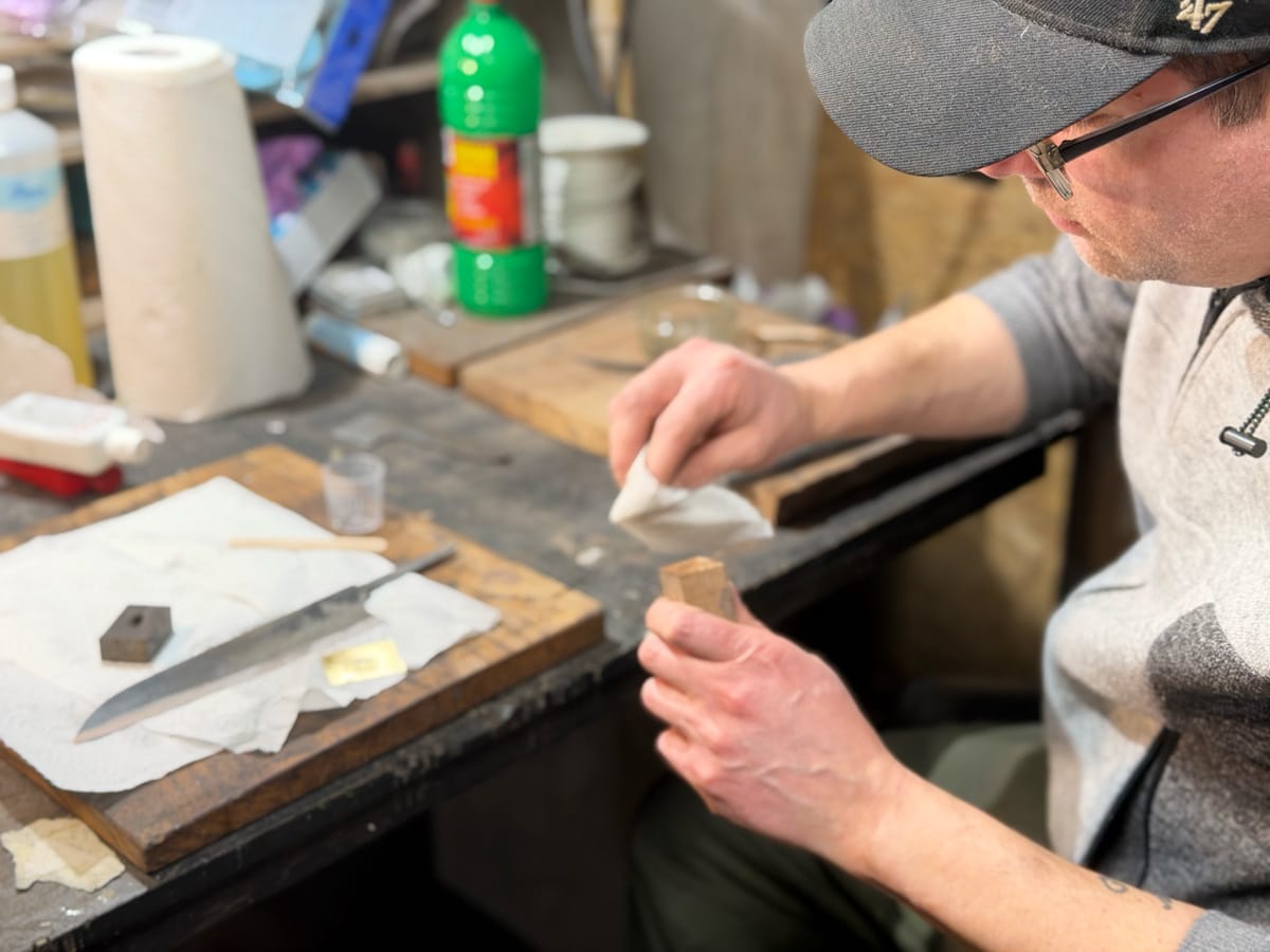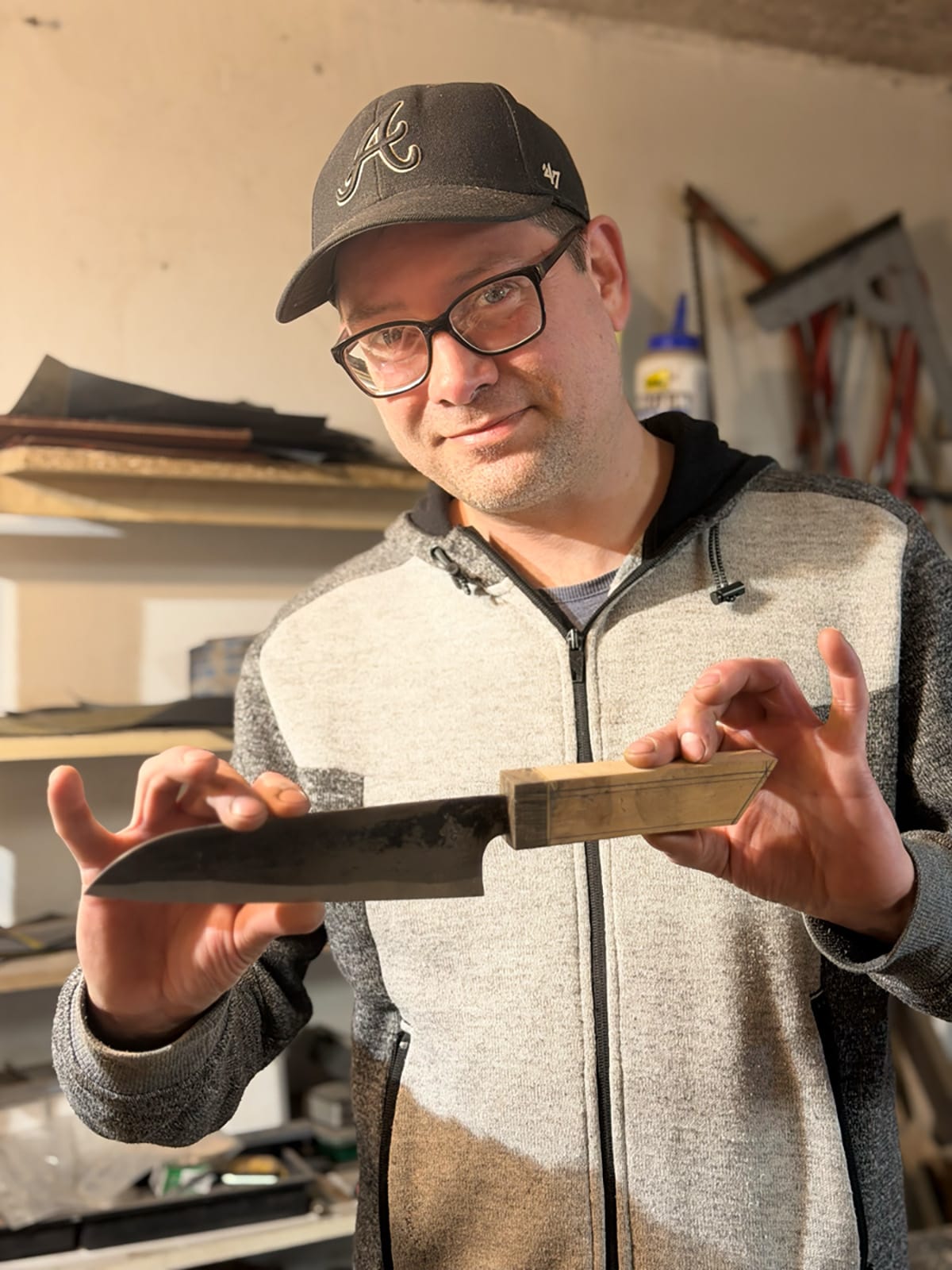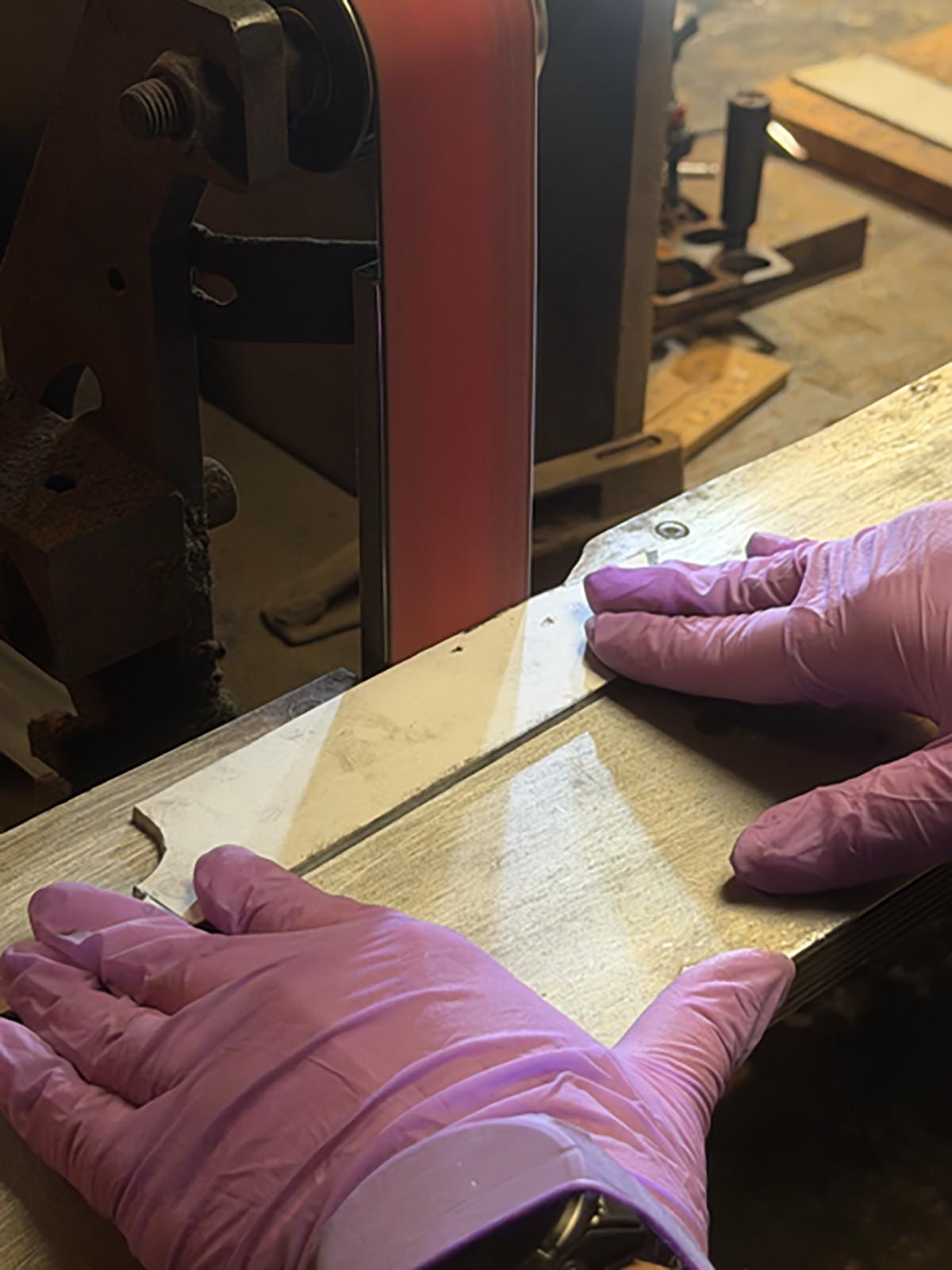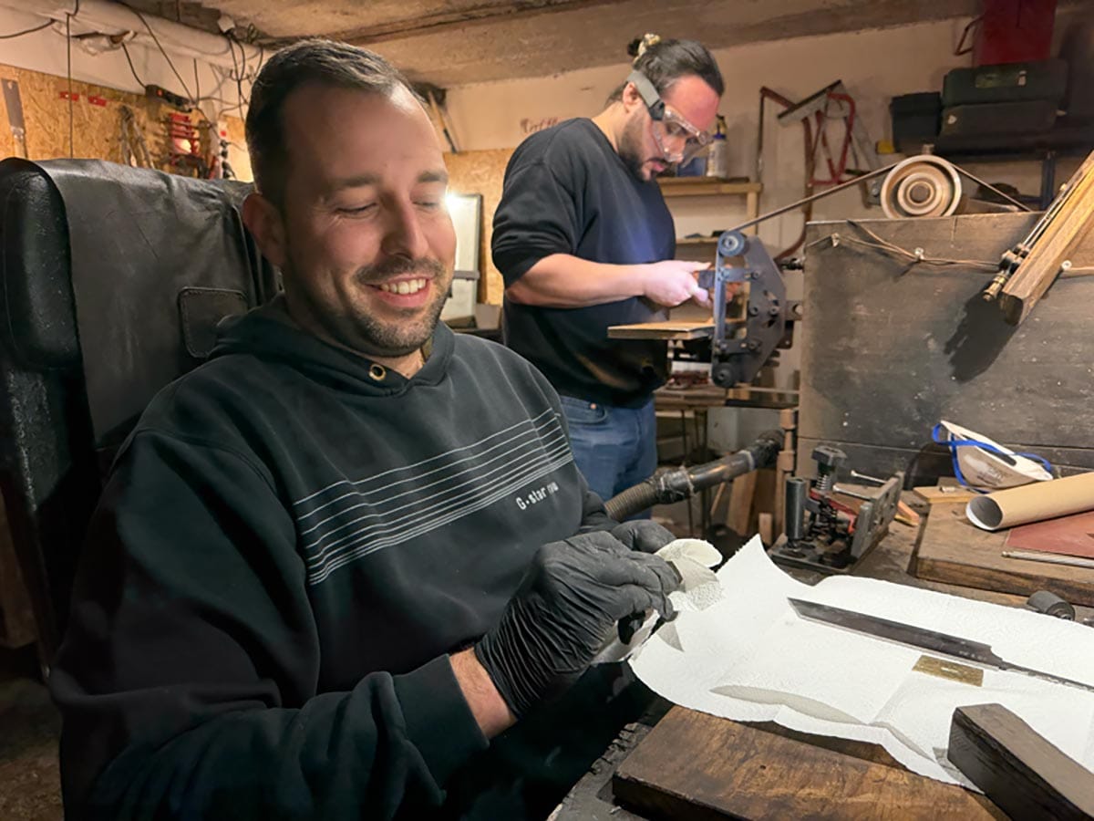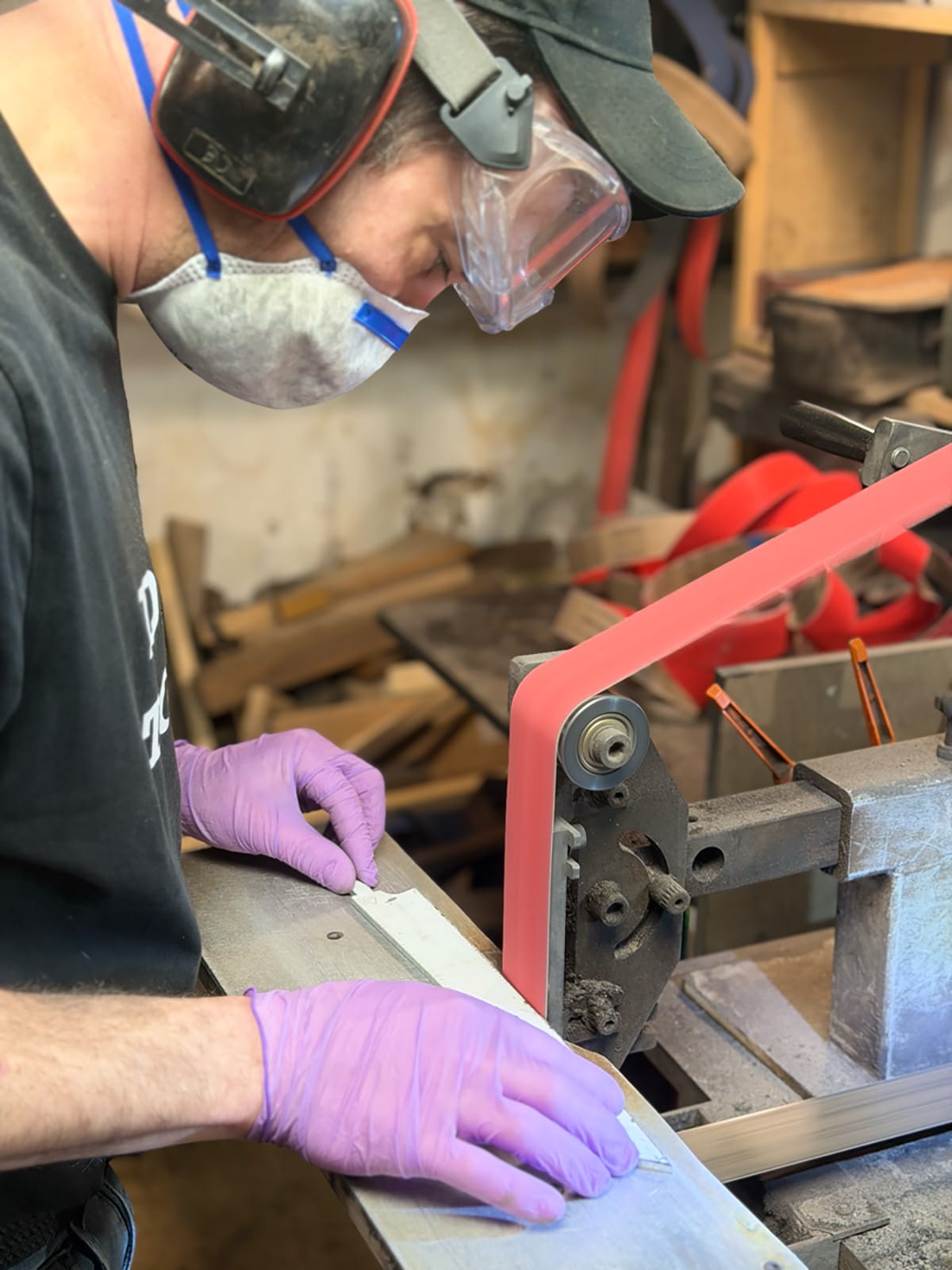 Du arbeitest an deiner eigenen Klinge: vom Rohstahl bis zum präzisen Schliff, vom Oberflächenfinish bis zu optionalen Ätzungen mit persönlicher Bedeutung. Auch der Griff wird nicht vorgegeben, sondern bewusst gewählt. Holz und Material, Form, Haptik und Balance fügen sich zu einem Messer, das sich natürlich anfühlt und eindeutig dir gehört.