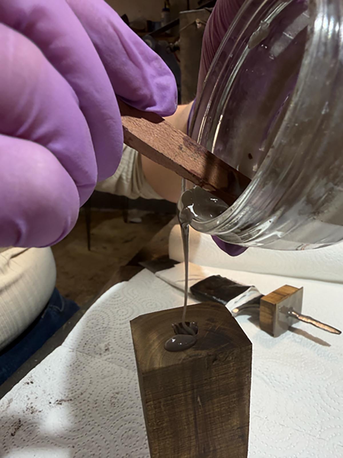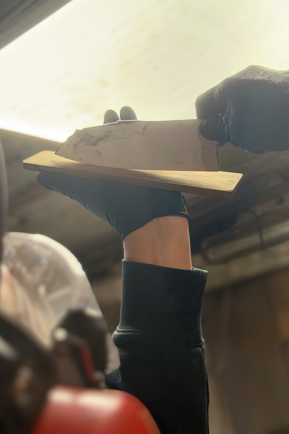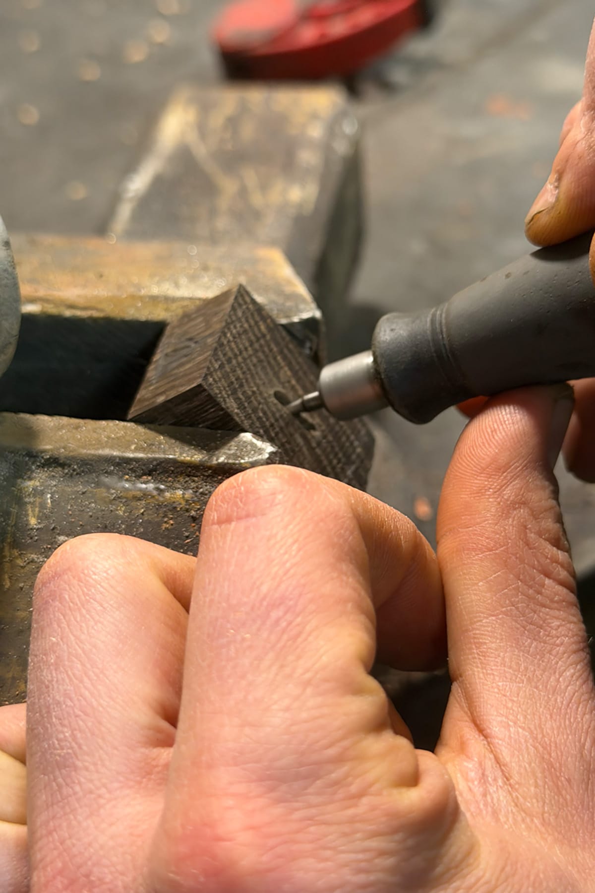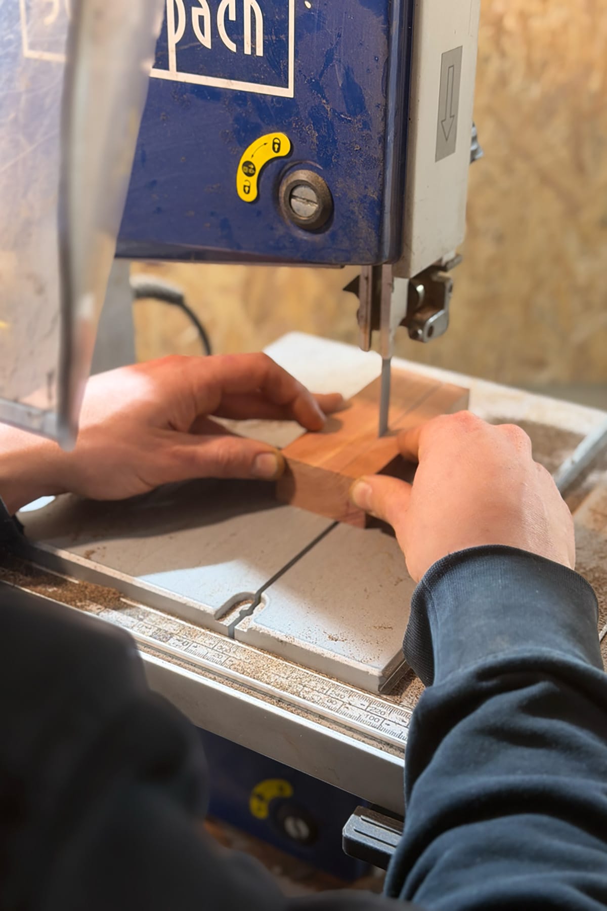 Ein Messer ist nur so gut, wie es in der Hand liegt. Du wählst aus sorgfältig selektierten Hölzern – von heimischer Mooreiche bis hin zu edlen Exoten dein Griffmaterial. Für das besondere Detail setzen wir Akzente durch präzise Einlagen aus Messing, Silber oder hochwertigem Kunststoff. Du formst, schleifst und polierst den Griff, bis er sich natürlich in deine Hand schmiegt. Hier fügen sich Holz, Metall und feine Inlays zu einer harmonischen, ergonomischen Einheit.