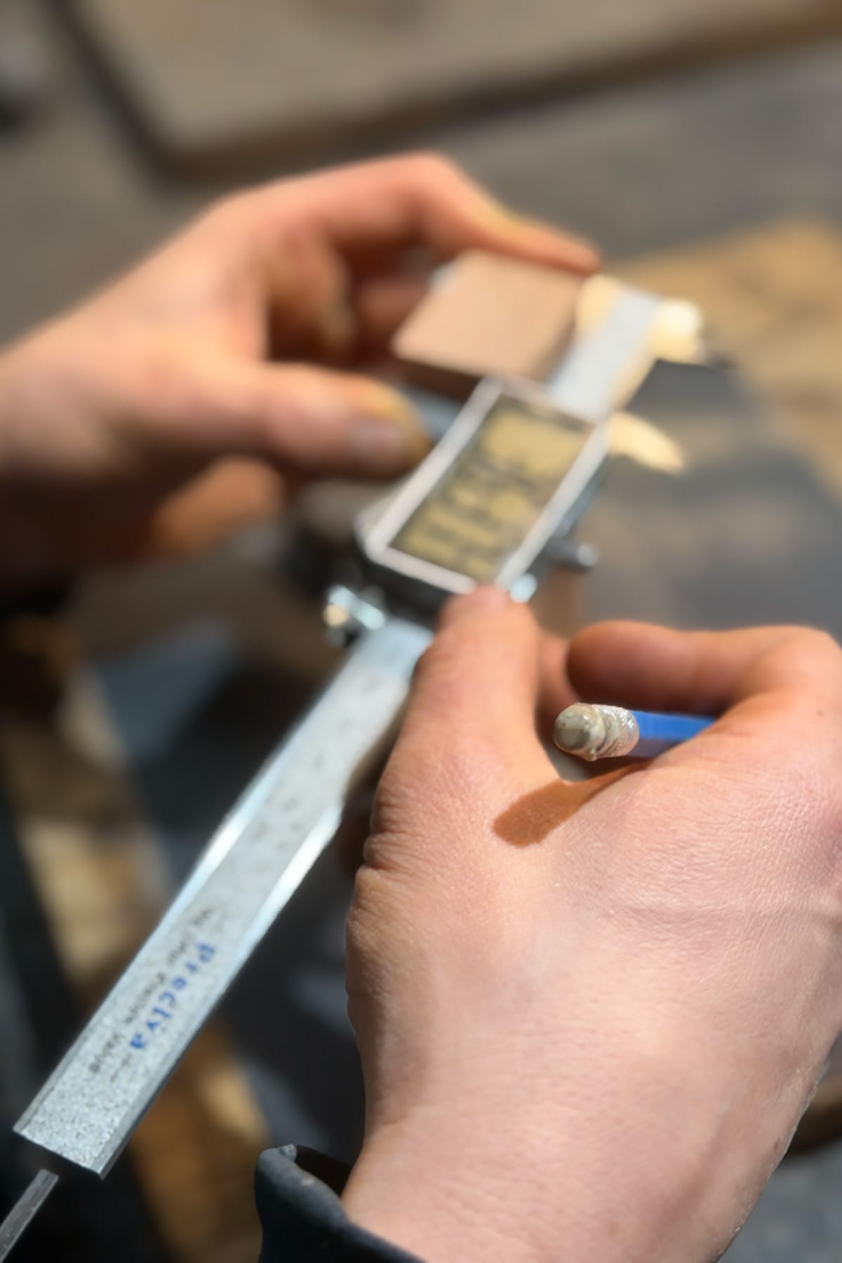 Dein Messer beginnt im Kopf. Gemeinsam legen wir die Form, das Material und die Ätzung fest, damit das Messer perfekt zu deiner Hand und deinem Anspruch passt. Wir besprechen Geometrien und Proportionen – denn gutes Design ist die Basis für ein funktionierendes Werkzeug. Jede Entscheidung zählt und prägt das spätere Werkstück.